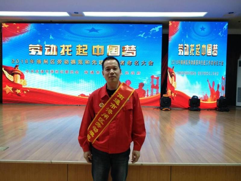 2018年4月28日下午,港閘區人民政府表彰命名了一批勞動模范和先進生產工作者,我公司新產品開發部部長朱紅耀同志光榮當選。